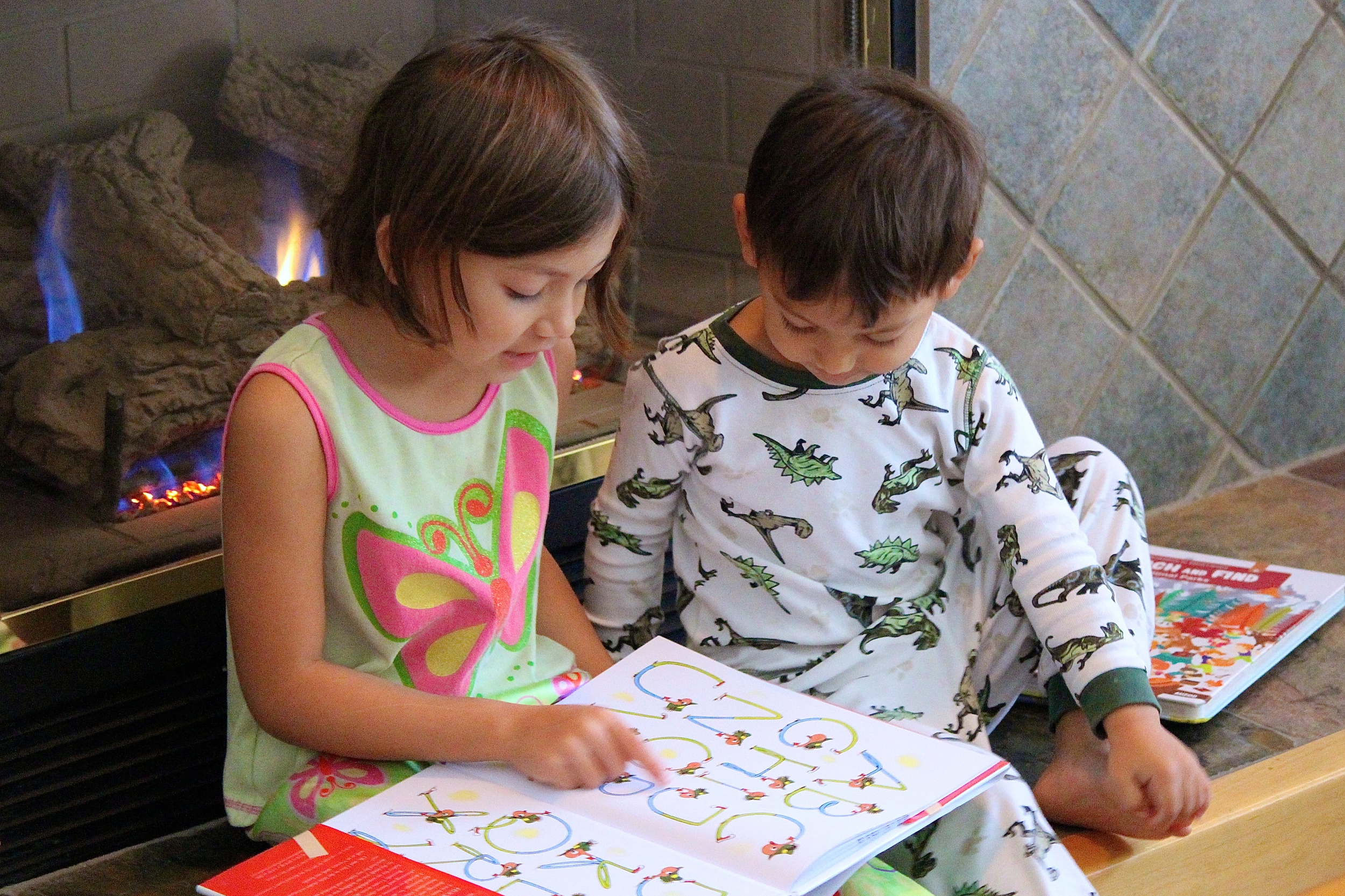 Early morning reading in pjs on Thanksgiving vacation