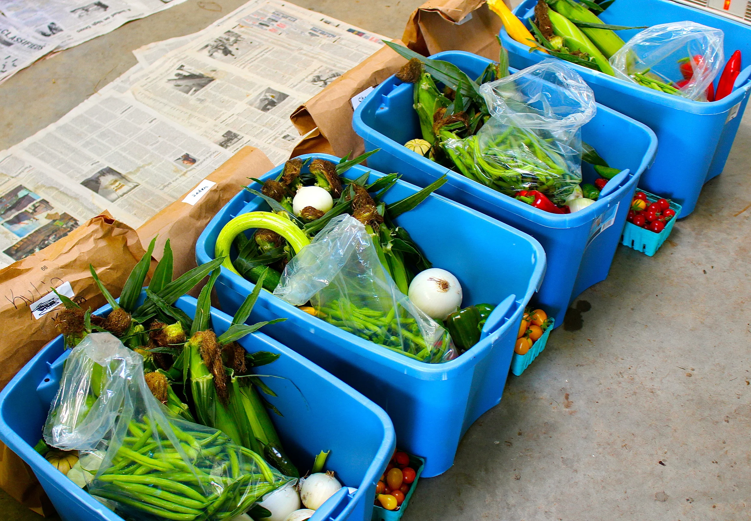 Four full shares of CSA produce (one bin = one share) at Dolan Creek Farm